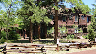 The homes are identical and are in the arts and crafts style. The stone work you see is actually lava rock and the wood structures are Ponderosa pines, which are native to the Flagstaff area.